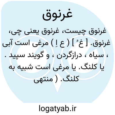 (غُ یا غِ ) [ ع. ] (اِ. ) پرنده ای است از راستة پا بلندان، دارای بال های دراز و ساق های طویل که به فارسی آن را کلنگ خوانند. غِرنیق، غُرنیق، غُرانق، ج. غَرانیق، غَرانق و غَرانقه.