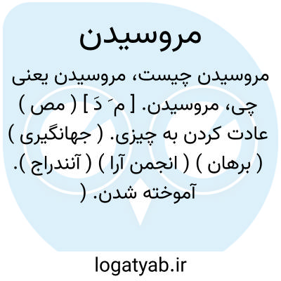 مروسیدن. [ م َ دَ ] ( مص ) عادت کردن به چیزی. ( جهانگیری ) ( برهان ) ( انجمن آرا ) ( آنندراج ). آموخته شدن. ( ناظم الاطباء ). || رنج بردن در کاری به وقت بی چیزی و مفلسی. ( برهان ) ( از جهانگیری ). رنج بردن به کاری. ( انجمن آرا ) ( آنندراج ). || واکوشیدن. ممارست. اشتغال به کاری. وررفتن با. انگولک کردن. پیله کردن. کند و کو کردن. ( یادداشت مرحوم دهخدا ): طرد؛ مروسیدن به شکار. علهسة؛ سخت مروسیدن چیزی را. علهصة؛ سخت مروسیدن با کسی. کید؛ مروسیدن باهم. معافسة؛ همدیگر مروسیدن. تکاوح؛ با یکدیگر مروسیدن در شر و بدی. تناطی؛ مروسیدن باکسی. مکاظة؛ سخت مروسیدن در جنگ.مناوصة؛ همدیگر را گرفتن در کارزار و مروسیدن. || چاره کردن.دوا و مداوا کردن. ( ناظم الاطباء ). تزاول. تعالج. زِوال. علاج. مراس. مرس. مزاولة. ( صراح ). مساجاة. معافقة. مجالجة. مکایصة. ممارزة. ممارسة. مفاوصة. اقتمام؛مروسیدن به بیمار. تعطیب؛ علاج کردن و مروسیدن شراب را تا بوی خوش گیرد. تنصر؛ مروسیدن به یاری کردن. معالجة؛ مروسیدن به بیمار و جز آن. ( از منتهی الارب ).