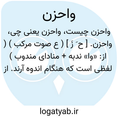 واحزن. [ ح َ زَ ] ( ع صوت مرکب ) ( از: «وا» ندبه + منادای مندوب ) لفظی است که هنگام اندوه آرند. از اصوات افسوس و اندوه است: