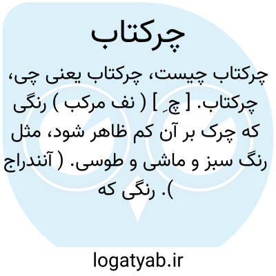 چرکتاب. [ چ ِ ] ( نف مرکب ) رنگی که چرک بر آن کم ظاهر شود، مثل رنگ سبز و ماشی و طوسی. ( آنندراج ). رنگی که نگذارد چرک ظاهر شود، مثل رنگ سیاه و کبود و مانند اینها. ( فرهنگ نظام ). رنگی که شوخ و چرک آن دیر مشهود شود. چرتاب. رنگی که غالباً جامه اطفال یا کسانیرا که با خاک و گل سر و کار دارند بدان رنگ انتخاب میکنند. رنگی از جامه که چرکنی جامه با آن رنگ دیرتر پیدا و مشهود گردد: