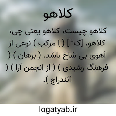 کلاهو. [ک َ ] ( اِ مرکب ) نوعی از آهوی بی شاخ باشد. ( برهان ) ( فرهنگ رشیدی ) ( از انجمن آرا ) ( آنندراج ). از کل + آهو. آهوی بی شاخ. کل. توضیح اینکه عادةً مراد از کل و کلاهو آهوی نر بدون شاخ است ولی در تقسیم بندی نشخوارکنندگان آهوانی که در دسته کل ها قرار می گیرند، همه فاقد شاخ نیستند بلکه تعدادی از آهوان شاخدار نیز در آن دسته جای دارند. ( فرهنگ فارسی معین ):