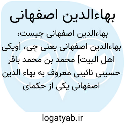 [ویکی فقه] بهاءالدین اصفهانی (ابهام زدایی). بهاءالدین اصفهانی ممکن است اشاره به اشخاص و شخصیت های ذیل باشد: • بهاءالدین بن علی برهانی اصفهانی، عالم فاضل، ادیب شاعر، واعظ کامل، از فضلاء و وعّاظ اصفهان• بهاءالدین بن محمدباقر الفت اصفهانی، متخلص به «مفتون»، شاعر و ادیب فاضل، در اصفهان• بهاءالدین بن محمدجواد فاضل نوری اصفهانی، عالم فاضل و ادیب شاعر، از علمای عالی قدر اواخر دوره قاجاریه در اصفهان• بهاءالدین کاشانی اصفهانی، عالم فاضل محدّث، در اواخر عهد صفویه در اصفهان• سیدبهاءالدین بن حسن مهدوی اصفهانی، عالم فاضل زاهد در اصفهان• سیدبهاءالدین بن محمد رضوی خوانساری اصفهانی، متخلّص به «جهدی»، عالم فاضل و شاعر ادیب در اصفهان• سیدبهاءالدین بن محمد موسوی صدر عاملی اصفهانی، عالم فاضل ادیب شاعر، در اصفهان