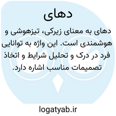 دهای به معنای زیرکی، تیزهوشی و هوشمندی است. این واژه به توانایی فرد در درک و تحلیل شرایط و اتخاذ تصمیمات مناسب اشاره دارد.