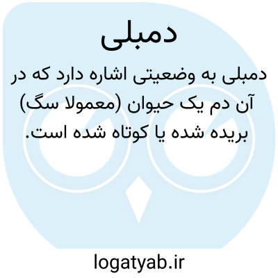 اصطلاح دمبلی /dembeli/ در گویش مازنی به معنای دم بریده یا کوتاه است. این واژه به طور خاص به وضعیتی اشاره دارد که در آن دم یک حیوان (معمولاً سگ) بریده شده یا کوتاه شده است.