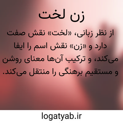 کلمه «زن لخت» به معنای زنی است که برهنه است و هیچ پوششی بر بدن ندارد. این اصطلاح در زبان فارسی عمدتاً برای توصیف وضعیت جسمانی فرد به کار می‌رود و بار معنایی مستقیم و فیزیکی دارد. کاربرد آن می‌تواند در متون ادبی، توصیف‌های تصویری یا محاوره‌ای باشد و هدف اصلی بیان آشکار بودن بدن است. این عبارت گاهی در ادبیات کهن برای توصیف صحنه‌ها یا شخصیت‌هایی به کار رفته که برهنگی آن‌ها نکته مهم روایت بوده است. در متون معاصر نیز «زن لخت» بیشتر جنبه واقعی و تصویری دارد و به معنای کامل برهنگی فرد است. بسته به زمینه، این واژه می‌تواند بار اخلاقی، فرهنگی یا هنری داشته باشد و معمولاً در آثار ادبی یا اجتماعی با دقت و احتیاط به کار می‌رود. این عبارت نمونه‌ای از ترکیب صفت و اسم در فارسی است که حالت جسمانی یا وضعیت پوشش فرد را مشخص می‌کند. از نظر زبانی، «لخت» نقش صفت دارد و «زن» نقش اسم را ایفا می‌کند، و ترکیب آن‌ها معنای روشن و مستقیم برهنگی را منتقل می‌کند.