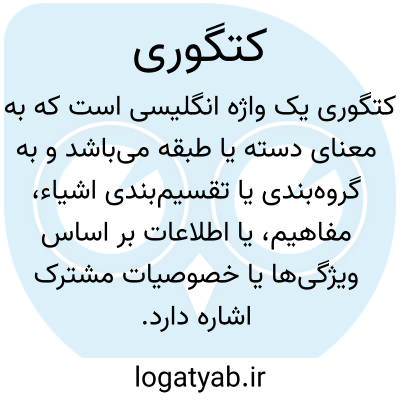 کتگوری (category) یک واژه انگلیسی است که به معنای دسته یا طبقه می‌باشد و به گروه‌بندی یا تقسیم‌بندی اشیاء، مفاهیم، یا اطلاعات بر اساس ویژگی‌ها یا خصوصیات مشترک اشاره دارد. این واژه در زمینه‌های مختلفی مانند علم، فلسفه، آمار، و مدیریت اطلاعات به کار می‌رود. به عنوان مثال، در علم، می‌توان موجودات زنده را به دسته‌های مختلفی مانند پستانداران، پرندگان، و خزندگان تقسیم کرد. در آمار، داده‌ها می‌توانند به کتگوری‌های مختلفی مانند سن، جنسیت، و درآمد تقسیم شوند. در تجارت و بازاریابی، محصولات ممکن است به کتگوری‌های مختلفی مانند الکترونیک، پوشاک، و مواد غذایی تقسیم شوند. به طور کلی، کتگوری به روشی برای سازماندهی و دسته‌بندی اطلاعات کمک می‌کند تا فهم و مدیریت آن‌ها آسان‌تر شود.