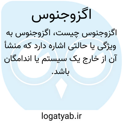 روانشناسی: در روانشناسی، عوامل خارجی که بر رفتار یا وضعیت روانی فرد تأثیر می‌گذارند و از درون فرد ناشی نمی‌شوند. به عنوان مثال، تجربیات زندگی یا فشارهای اجتماعی می‌توانند به عنوان عوامل اگزوژنوس در نظر گرفته شوند.