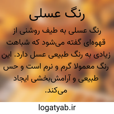 رنگ عسلی به طیف روشنی از قهوه‌ای گفته می‌شود که شباهت زیادی به رنگ طبیعی عسل دارد. این رنگ معمولاً گرم و نرم است و حس طبیعی و آرامش‌بخشی ایجاد می‌کند. در طراحی، مد و دکوراسیون، این رنگ به دلیل خنثی و دلپذیر بودن، به راحتی با رنگ‌های دیگر ترکیب می‌شود.
