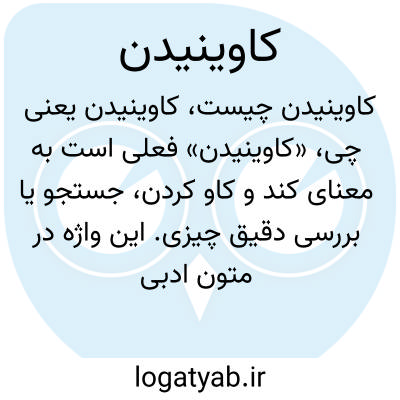 «کاوینیدن» فعلی است به معنای کند و کاو کردن، جستجو یا بررسی دقیق چیزی. این واژه در متون ادبی به معنای عمیق نگاه کردن یا جستجوی دقیق درباره مطلبی به کار می‌رود.