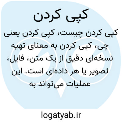 کپی کردن به معنای تهیه نسخهای دقیق از یک متن، فایل، تصویر یا هر دادهای است. این عملیات میتواند به صورت دیجیتال یا فیزیکی انجام شود و برای انتقال اطلاعات یا بازتولید محتوا به کار میرود.