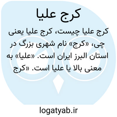 «کرج» نام شهری بزرگ در استان البرز ایران است. «علیا» به معنی بالا یا علیا است. «کرج علیا» می‌تواند به بخش بالاتر یا بخش قدیمی‌تر شهر کرج اشاره داشته باشد؛ به عبارتی، منطقه‌ای در کرج که قدیمی‌تر یا مرتفع‌تر است.