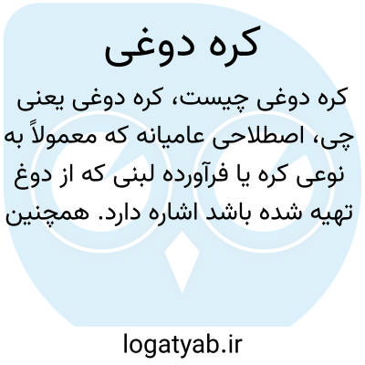اصطلاحی عامیانه که معمولاً به نوعی کره یا فرآورده لبنی که از دوغ تهیه شده باشد اشاره دارد. همچنین می‌تواند به صورت ترکیب محلی یا فرهنگی معنا داشته باشد.
