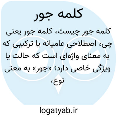 اصطلاحی عامیانه یا ترکیبی که به معنای واژه‌ای است که حالت یا ویژگی خاصی دارد؛ «جور» به معنی نوع، شکل یا حالتی است که به گونه‌ای خاص تعریف شده باشد. مثلاً ممکن است به واژه‌ای که به شکل خاصی به‌کار رفته یا معنای خاصی دارد، گفته شود.