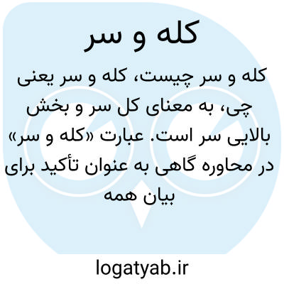 به معنای کل سر و بخش بالایی سر است. عبارت «کله و سر» در محاوره گاهی به عنوان تأکید برای بیان همه چیز یا کل چیزی به کار میرود.