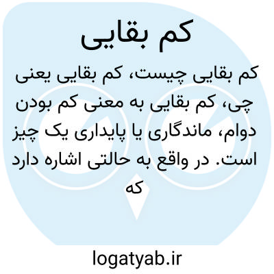 کم بقایی به معنی کم بودن دوام، ماندگاری یا پایداری یک چیز است. در واقع به حالتی اشاره دارد که چیزی مدت زمان کوتاهی باقی میماند یا عمر مفید کوتاهی دارد.