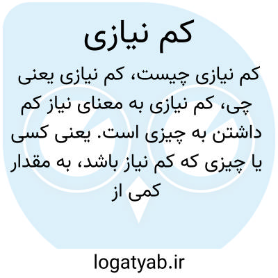 کم نیازی به معنای نیاز کم داشتن به چیزی است. یعنی کسی یا چیزی که کم نیاز باشد، به مقدار کمی از منابع یا کمکها نیاز دارد و مستقل یا خودکفا تلقی میشود.