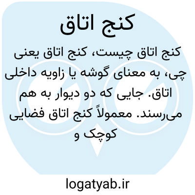 به معنای گوشه یا زاویه داخلی اتاق. جایی که دو دیوار به هم میرسند. معمولاً کنج اتاق فضایی کوچک و زاویهدار است که در برخی مواقع برای قرار دادن اشیاء یا تزئین به کار میرود.