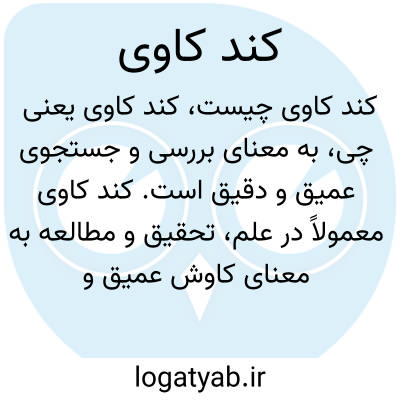 به معنای بررسی و جستجوی عمیق و دقیق است. کند کاوی معمولاً در علم، تحقیق و مطالعه به معنای کاوش عمیق و تحلیل دقیق موضوعات است. مثلاً "کند کاوی در متون قدیمی" یعنی بررسی دقیق و عمیق متون.