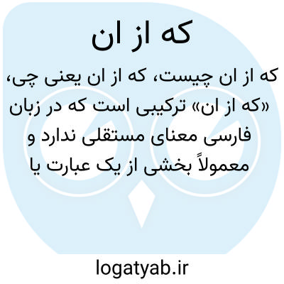 «که از ان» ترکیبی است که در زبان فارسی معنای مستقلی ندارد و معمولاً بخشی از یک عبارت یا جمله است. برای مثال «که از آن...»، یعنی که مربوط به آن چیز یا شخص باشد. بنابراین به تنهایی معنای مشخصی ندارد.