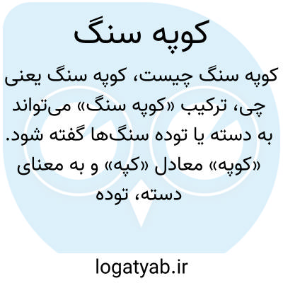 ترکیب «کوپه سنگ» می‌تواند به دسته یا توده سنگ‌ها گفته شود. «کوپه» معادل «کپه» و به معنای دسته، توده یا انبوه است و «سنگ» مشخص است؛ پس «کوپه سنگ» یعنی توده یا تیکه‌های سنگ.