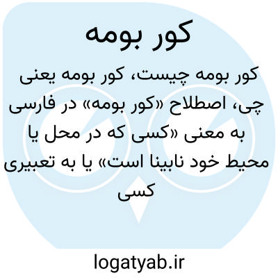 اصطلاح «کور بومه» در فارسی به معنی «کسی که در محل یا محیط خود نابینا است» یا به تعبیری کسی که نسبت به اطراف و محیط خود بی‌خبر و ناآگاه است، به کار می‌رود و معمولاً به افرادی اشاره دارد که از مسائل و واقعیت‌های اطراف خود اطلاع ندارند.