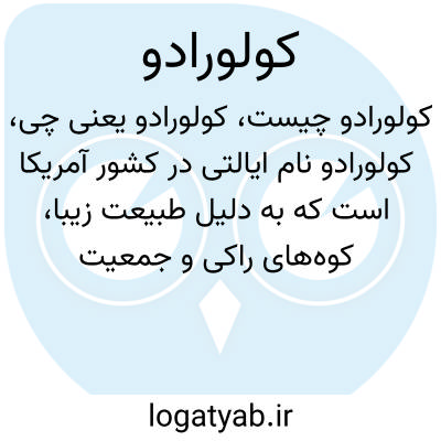 کولورادو نام ایالتی در کشور آمریکا است که به دلیل طبیعت زیبا، کوههای راکی و جمعیت متنوع شناخته شده است. در فارسی نیز این نام معمولاً به ایالت آمریکا اشاره دارد و معنای مستقلی ندارد.