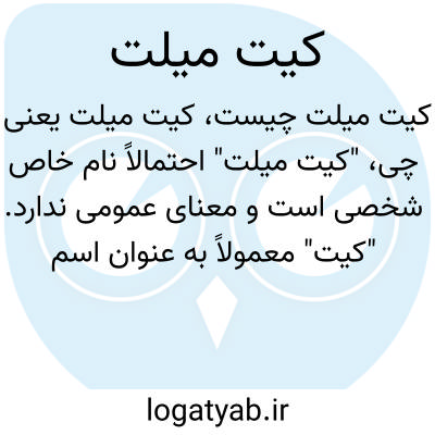 "کیت میلت" احتمالاً نام خاص شخصی است و معنای عمومی ندارد. "کیت" معمولاً به عنوان اسم کوچک (مخفف کاترین) و "میلت" احتمالاً نام خانوادگی است. بنابراین این عبارت به نام یک شخص خاص اشاره دارد و معنای لغوی ندارد.