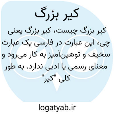 این عبارت در فارسی یک عبارت سخیف و توهین‌آمیز به کار می‌رود و معنای رسمی یا ادبی ندارد. به طور کلی "کیر" واژه‌ای نابهنجار و نامناسب است که به صورت عامیانه و توهین‌آمیز به اندام تناسلی مردانه گفته می‌شود. افزودن "بزرگ" به این واژه نیز به همان منظور افزایش اندازه مذکور به کار می‌رود. استفاده از این واژه در روابط دوستانه یا رسمی توصیه نمی‌شود.