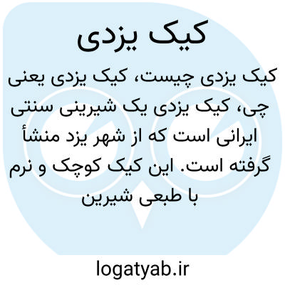 کیک یزدی یک شیرینی سنتی ایرانی است که از شهر یزد منشأ گرفته است. این کیک کوچک و نرم با طبعی شیرین و مطبوع است و معمولا با روغن یا کره، تخم‌مرغ و آرد تهیه می‌شود. کیک یزدی به خاطر طعم خاص و بافت دلپذیرش بسیار محبوب است.