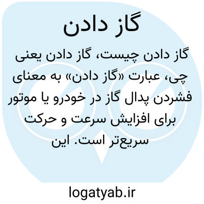 عبارت «گاز دادن» به معنای فشردن پدال گاز در خودرو یا موتور برای افزایش سرعت و حرکت سریع‌تر است. این اصطلاح در زبان محاوره‌ای به معنای شتاب گرفتن یا سرعت بخشیدن به کاری نیز به کار می‌رود.