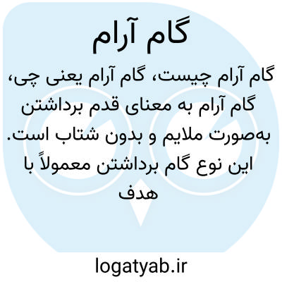 گام آرام به معنای قدم برداشتن به‌صورت ملایم و بدون شتاب است. این نوع گام برداشتن معمولاً با هدف حفظ تعادل، آرامش و یا بررسی دقیق مسیر انجام می‌شود. در فرهنگ فارسی، اشاره به گام آرام ممکن است بیانگر صبوری و احتیاط در انجام امور باشد.