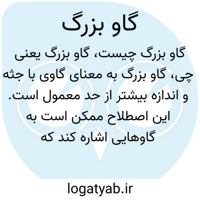 گاو بزرگ به معنای گاوی با جثه و اندازه بیشتر از حد معمول است. این اصطلاح ممکن است به گاوهایی اشاره کند که در نژادهای خاص یا برای اهداف ویژه پرورش یافته‌اند و جثه بزرگ آن‌ها باعث افزایش توان کاری یا تولید بیشتر شیر و گوشت می‌شود. گاو بزرگ می‌تواند سمبل قدرت و استقامت در فرهنگ عامه نیز باشد.