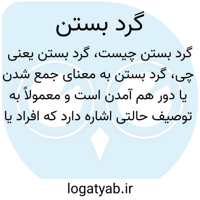 گرد بستن به معنای جمع شدن یا دور هم آمدن است و معمولاً به توصیف حالتی اشاره دارد که افراد یا اشیاء به صورت دایره‌ای و منظم کنار هم قرار می‌گیرند. این عبارت می‌تواند به معنای آماده شدن برای کاری یا حضور در یک مکان مشخص نیز استفاده شود.
