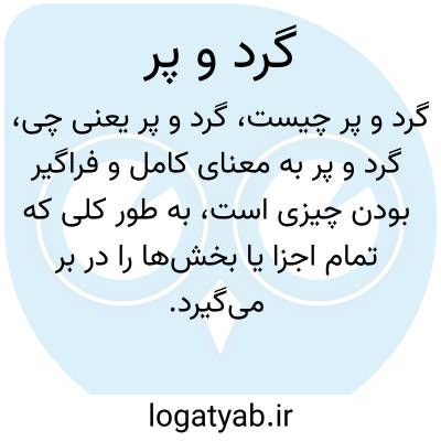 گرد و پر به معنای کامل و فراگیر بودن چیزی است، به طور کلی که تمام اجزا یا بخش‌ها را در بر می‌گیرد. این ترکیب می‌تواند اشاره به جامع بودن موضوع یا چیزی که همه جوانب آن دیده شده دارد.