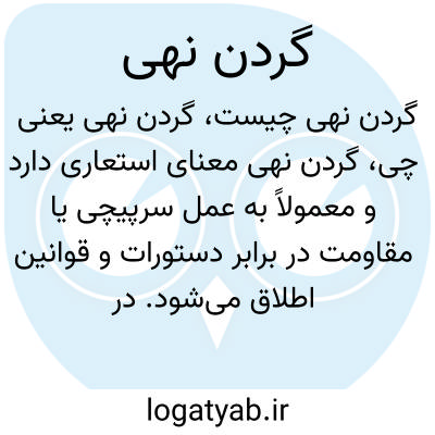 گردن نهی معنای استعاری دارد و معمولاً به عمل سرپیچی یا مقاومت در برابر دستورات و قوانین اطلاق می‌شود. در ادبیات فارسی ممکن است برای توصیف عدم اطاعت از مقام‌های بالاتر به کار رود.