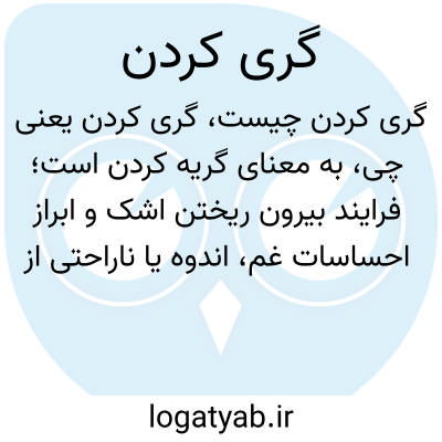 به معنای گریه کردن است؛ فرایند بیرون ریختن اشک و ابراز احساسات غم، اندوه یا ناراحتی از طریق اشک ریختن که یک واکنش طبیعی انسانی به غم یا درد است. گریه کردن می‌تواند باعث کاهش تنش‌های روانی شود و نشانه ابراز احساسات و همدردی باشد.