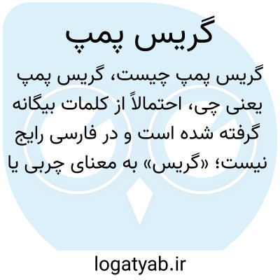 احتمالاً از کلمات بیگانه گرفته شده است و در فارسی رایج نیست؛ «گریس» به معنای چربی یا روانکار و «پمپ» به معنای پمپی است که این روانکار را پمپاژ می‌کند؛ بنابراین در محیط‌های فنی به دستگاهی گفته می‌شود که گریس را به بخش‌های مختلف ماشین‌آلات می‌رساند.