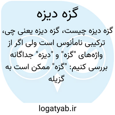 ترکیبی نامأنوس است ولی اگر از واژه‌های "گزه" و "دیزه" جداگانه بررسی کنیم: "گزه" ممکن است به گزیله (نوعی شاخه یا خار) اشاره داشته باشد و "دیزه" در لهجه‌های محلی به معنی دهکده یا محل است. مجموعاً ممکن است به مکان یا خاصیتی اشاره کند ولی به طور دقیق معانی مشخصی ندارد و ممکن است نام مکان خاص باشد.