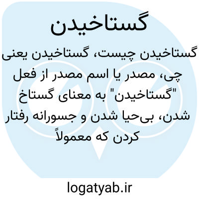 مصدر یا اسم مصدر از فعل "گستاخیدن" به معنای گستاخ شدن، بیحیا شدن و جسورانه رفتار کردن که معمولاً بار منفی دارد. کسی که گستاخ است، بدون رعایت احترام یا ادب، رفتار میکند.