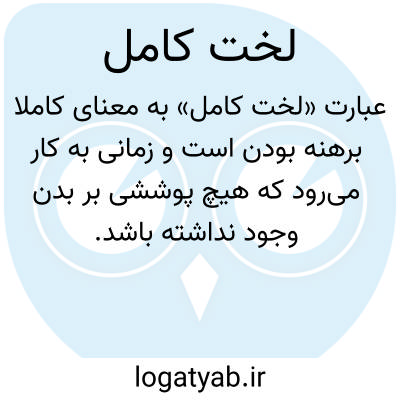 عبارت «لخت کامل» به معنای کاملاً برهنه بودن است و زمانی به کار می‌رود که هیچ پوششی بر بدن وجود نداشته باشد. «لخت» به معنی بدون لباس و برهنه است و «کامل» شدت این حالت را نشان می‌دهد، یعنی تمام بدن در حالت برهنگی قرار دارد. این عبارت می‌تواند در متون توصیفی، هنری یا ادبی برای اشاره به ظاهر جسمانی فرد استفاده شود و بار جنسی، نمادین یا توصیفی داشته باشد. در قوانین و فرهنگ‌ها، نمایش عمومی «لخت کامل» معمولاً محدودیت دارد و می‌تواند خلاف عرف یا قانون باشد. این ترکیب صرفاً توصیف وضعیت فیزیکی بدن است و معادل انگلیسی آن completely naked یا fully nude می‌باشد.