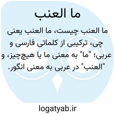 ترکیبی از کلماتی فارسی و عربی؛ "ما" به معنی ما یا هیچچیز، و "العنب" در عربی به معنی انگور. به معنای "ما انگور" یا "هیچ انگور" بدون ترکیب درست دستوری که در فارسی معنای کامل بدهد.