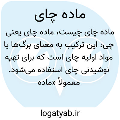 این ترکیب به معنای برگ‌ها یا مواد اولیه چای است که برای تهیه نوشیدنی چای استفاده می‌شود. معمولاً «ماده چای» به برگ‌های خشک شده یا فرآوری شده گیاه چای می‌گویند که برای دم کردن نوشیدنی به کار می‌رود.