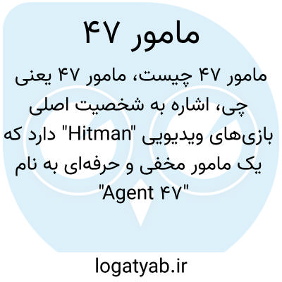 اشاره به شخصیت اصلی بازی‌های ویدیویی "Hitman" دارد که یک مامور مخفی و حرفه‌ای به نام "Agent 47" است. این شخصیت با مهارت‌های خاص در ترورها و ماموریت‌های سری شناخته می‌شود و جزء شخصیت‌های محبوب در دنیای بازی‌های رایانه‌ای است.