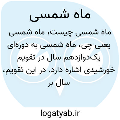 ماه شمسی به دوره‌ای یک‌دوازدهم سال در تقویم خورشیدی اشاره دارد. در این تقویم، سال بر اساس گردش زمین به دور خورشید تعیین می‌شود و ماه‌های آن بر اساس طول زمان عبور زمین از یک بخش معین از مدارش مشخص می‌گردد. همه ماه‌های تقویم شمسی قوانین ثابتی دارند و عمدتاً ۳۰ یا ۳۱ روز هستند.