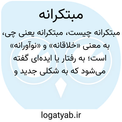 به معنی «خلاقانه» و «نوآورانه» است؛ به رفتار یا ایدهای گفته میشود که به شکلی جدید و خلاقانه انجام شود و نوآوری به همراه داشته باشد. مثلاً «راه حل مبتکرانه برای مشکل ارائه داد».