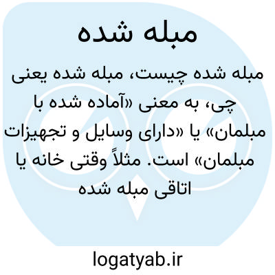 به معنی «آماده شده با مبلمان» یا «دارای وسایل و تجهیزات مبلمان» است. مثلاً وقتی خانه یا اتاقی مبله شده باشد، یعنی با لوازم مبلمان مجهز شده است.