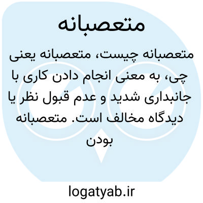 به معنی انجام دادن کاری با جانبداری شدید و عدم قبول نظر یا دیدگاه مخالف است. متعصبانه بودن به معنای داشتن تعصب است که باعث بسته ذهنی و بدون نقدپذیری درباره موضوع یا افراد دیگر می‌شود.