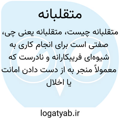 صفتی است برای انجام کاری به شیوهای فریبکارانه و نادرست که معمولاً منجر به از دست دادن امانت یا اخلال در حق دیگران میشود. متقلبانه بودن یعنی مرتکب تقلب شدن یا عمل کردن برخلاف قواعد اخلاقی و قانونی.