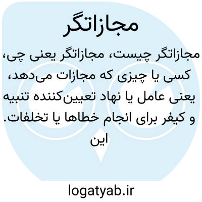 کسی یا چیزی که مجازات می‌دهد، یعنی عامل یا نهاد تعیین‌کننده تنبیه و کیفر برای انجام خطاها یا تخلفات. این کلمه به شخص یا سیستمی اشاره دارد که بر اساس قوانین یا اخلاق، افراد یا گروه‌ها را به دلیل رفتار نادرست مسئول می‌داند و به آن‌ها تنبیه روا می‌دارد.
