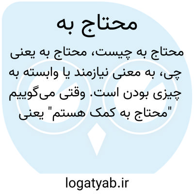 به معنی نیازمند یا وابسته به چیزی بودن است. وقتی می‌گوییم "محتاج به کمک هستم" یعنی نیازمند دریافت کمک هستم و بدون آن تمدنم کامل یا موفق نیست.
